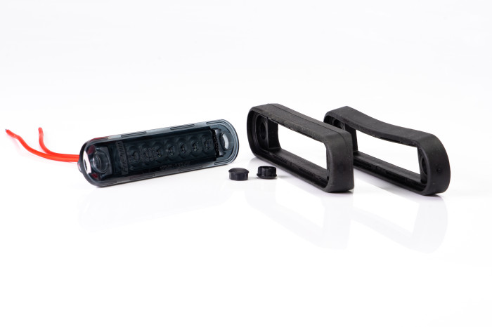 ŠONINIS PRIEKABOS ŽIBINTAS LED, DEŠINĖ PUSĖ, ILGAS, ĮSTRIŽAS, SU GABARITU IR JUNGTIMI